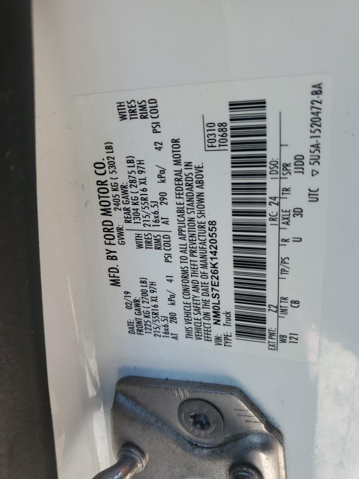 2019 FORD TRANSIT CONNECT - NM0LS7E26K1420558, цвет - Белый, 2.0, Бензин, из США