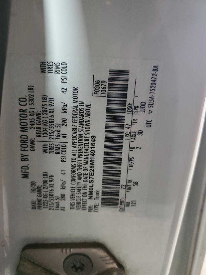 2021 FORD TRANSIT CONNECT - NM0LS7E28M1491649, цвет - Белый, 2.0, Бензин, из США