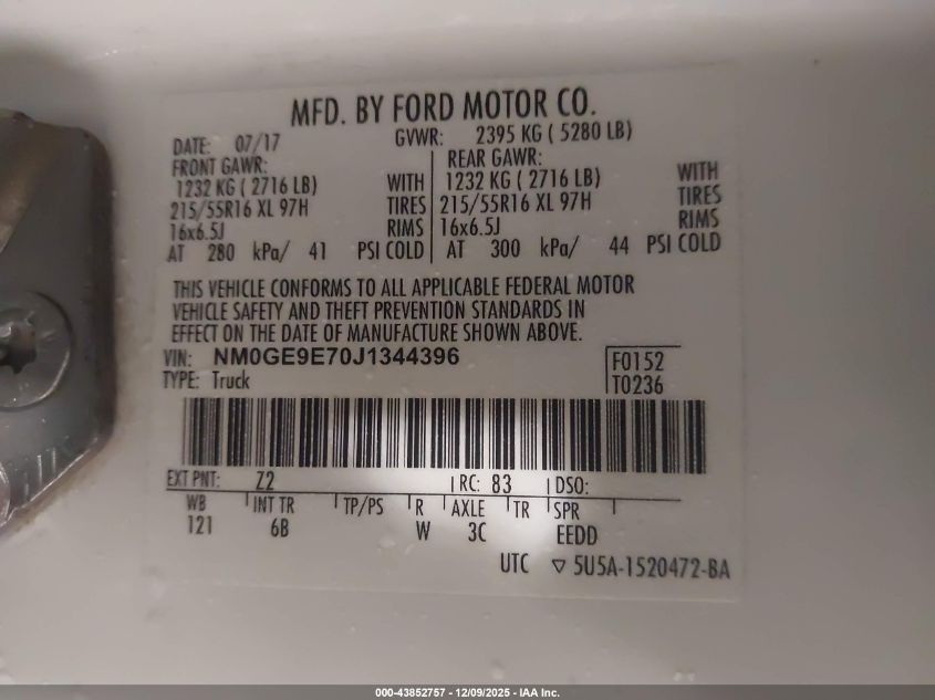 Цвет БелыйЦилиндры 4Привод Передний приводVIN NM0GE9E70J1344396Состояние СтационарноПовреждения Передняя или задняя