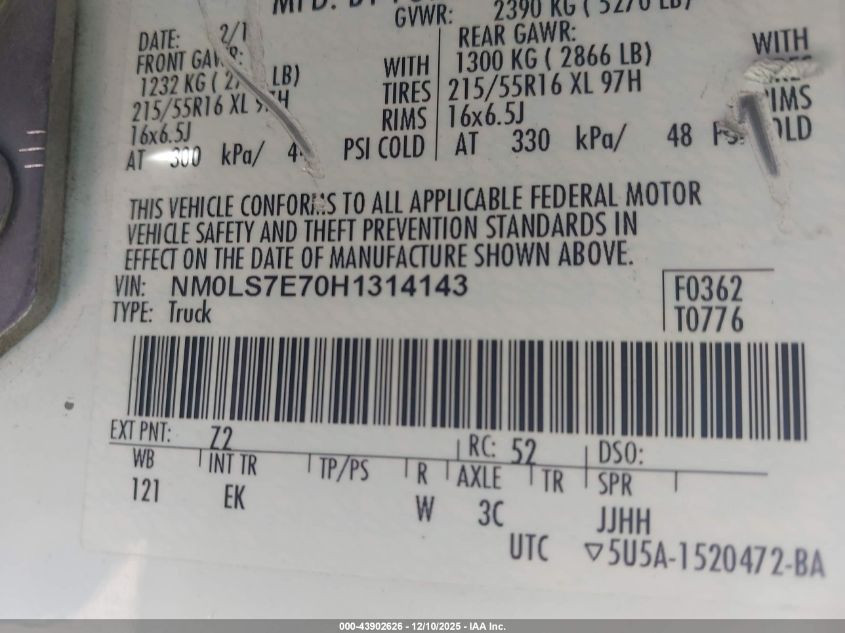 Цвет БелыйЦилиндры 4Привод Передний приводVIN NM0LS7E70H1314143Состояние Заводится и едет (проверено)Повреждения Задняя