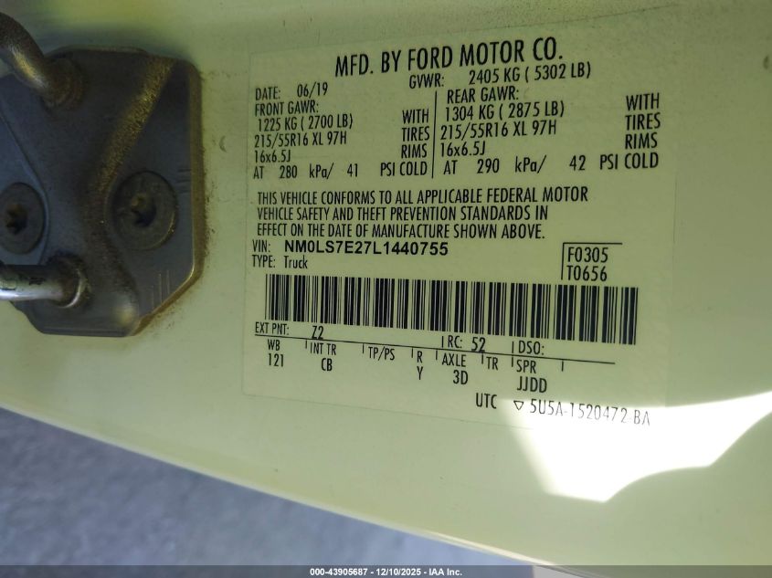 2020 FORD TRANSIT CONNECT - NM0LS7E27L1440755, цвет - Белый, 2.0, Бензин, Передний привод из США