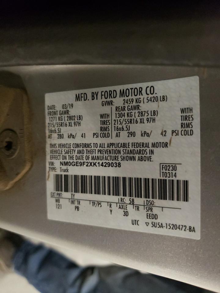 2019 FORD TRANSIT CONNECT - NM0GE9F2XK1429038, цвет - Серебряный, 2.0, Бензин, из США