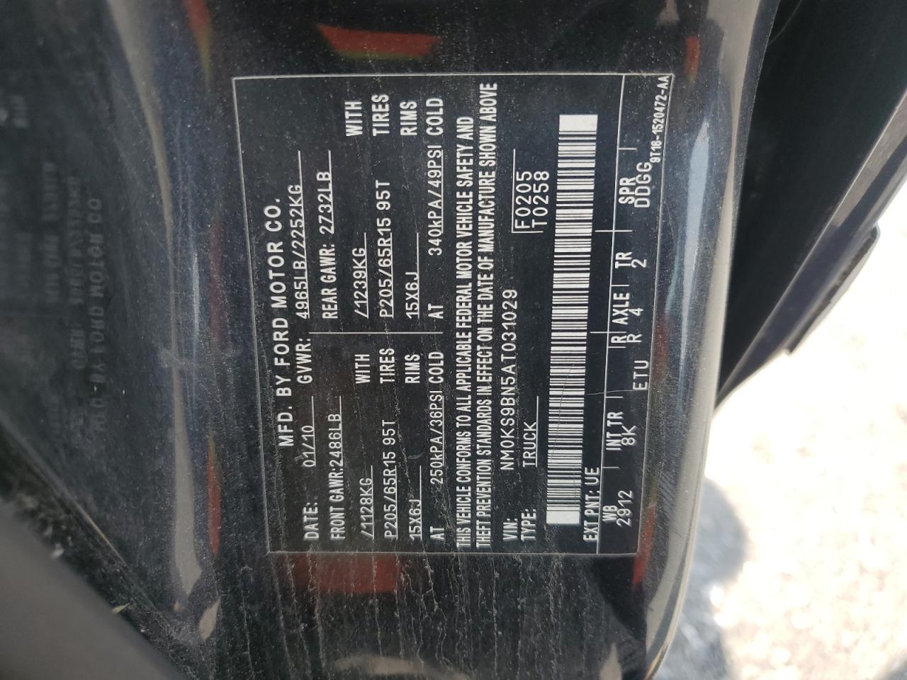 2010 FORD TRANSIT CONNECT - NM0KS9BN5AT031029, цвет - Черный, 2.0, Бензин, из США