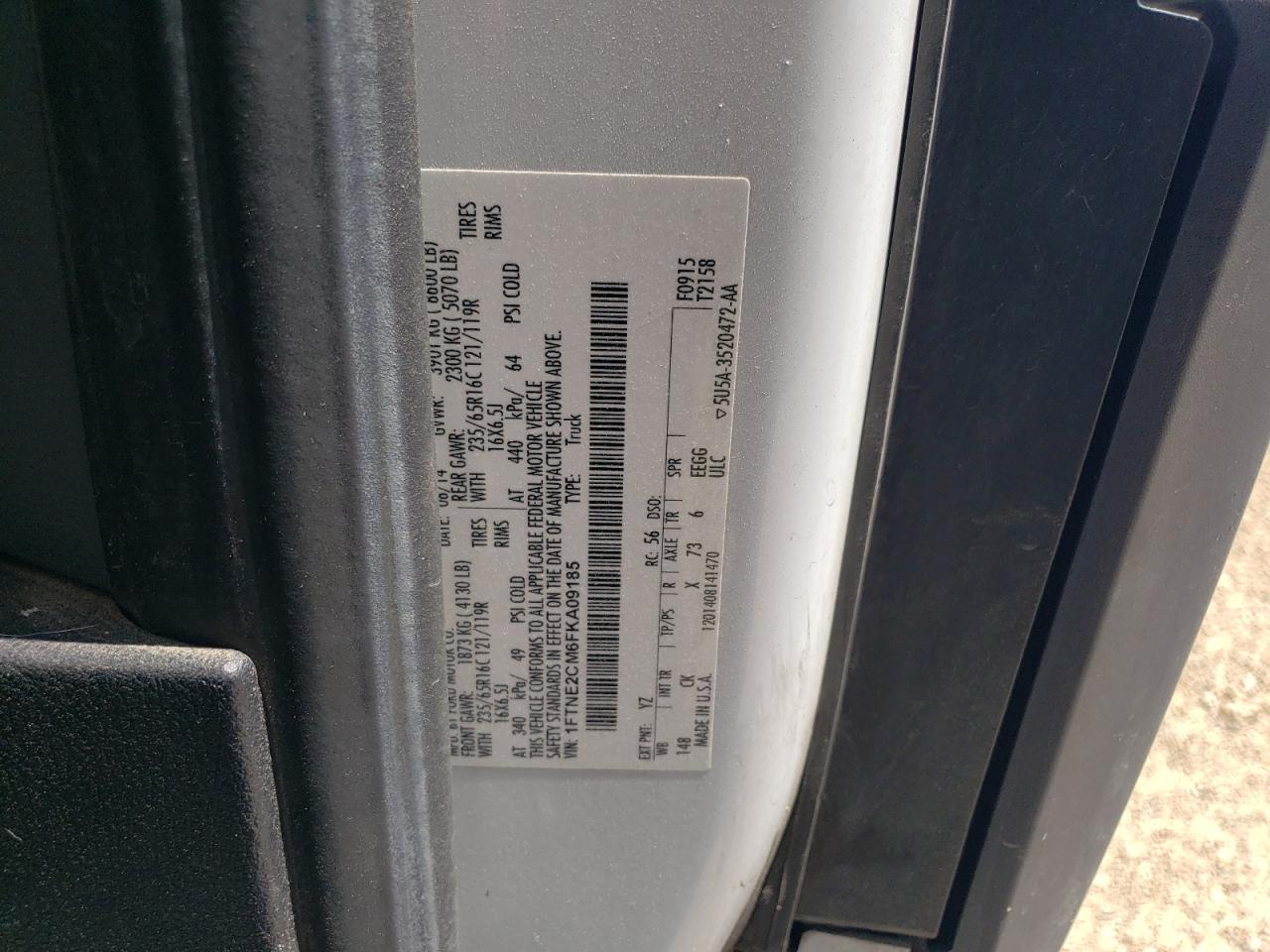 2015 FORD TRANSIT - 1FTNE2CM6FKA09185, цвет - Белый, 3.7, Бензин, Задний привод из США