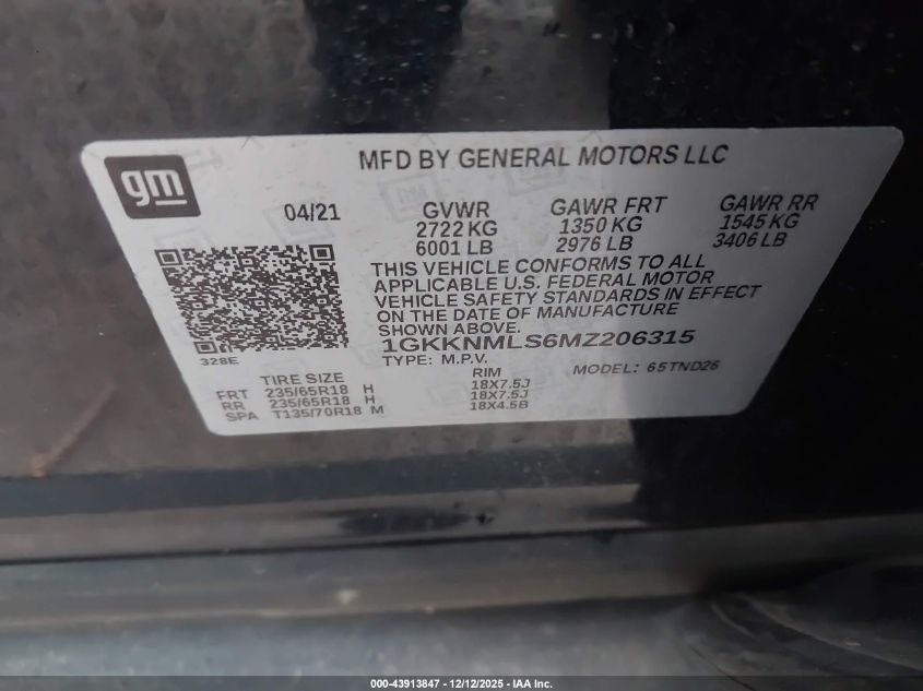 2021 GMC ACADIA - 1GKKNMLS6MZ206315, цвет - Черный, 3.6, Бензин, Передний привод из США