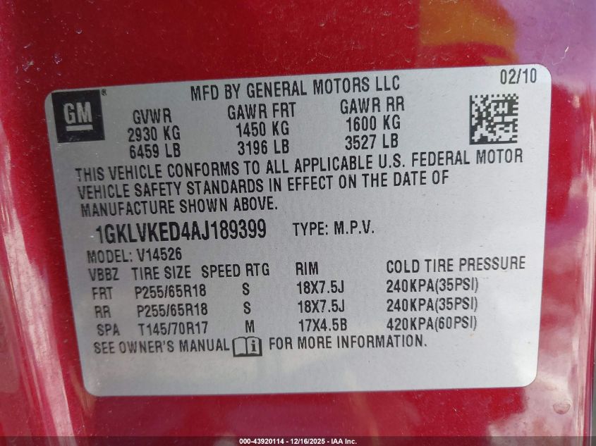 Цвет БордовыйЦилиндры 6Привод Полный приводVIN 1GKLVKED4AJ189399Состояние НеизвестноПовреждения Неизвестно