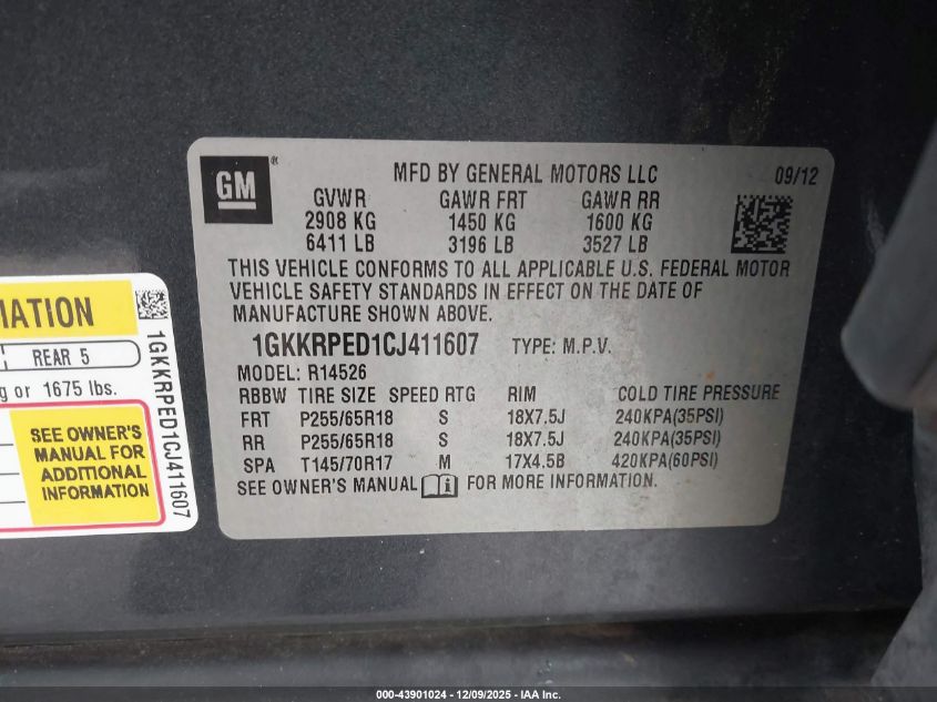 Цвет СерыйЦилиндры 6Привод Передний приводVIN 1GKKRPED1CJ411607Состояние СтационарноПовреждения Обычный износ