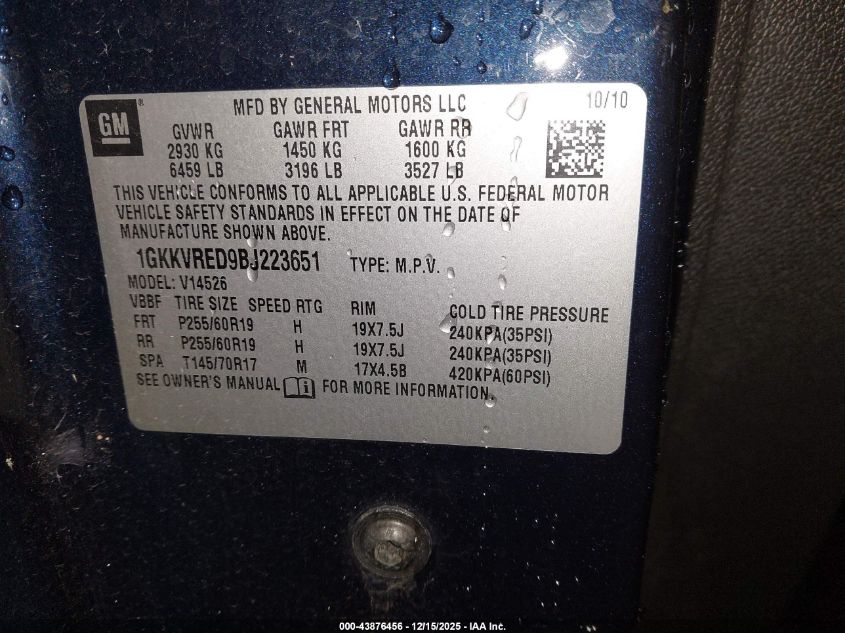 2011 GMC ACADIA - 1GKKVRED9BJ223651, цвет - , 3.6, Бензин, Полный привод из США