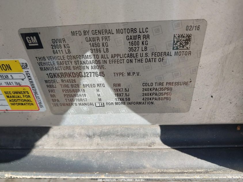 Цвет СеребряныйЦилиндры 6Привод Передний приводVIN 1GKKRRKD9GJ277645Состояние СтационарноПовреждения Левая сторона