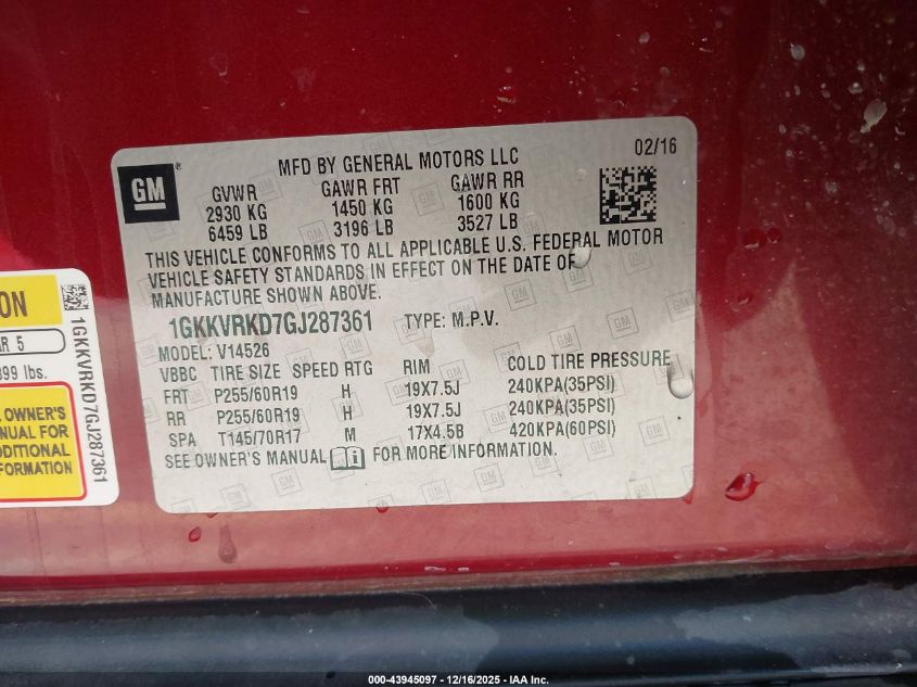 2016 GMC ACADIA - 1GKKVRKD7GJ287361, цвет - , 3.6, Бензин, Полный привод из США
