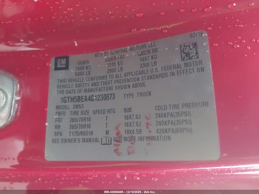 2016 GMC CANYON - 1GTH5BEA4G1230873, цвет - Красный, 2.5, Бензин, из США