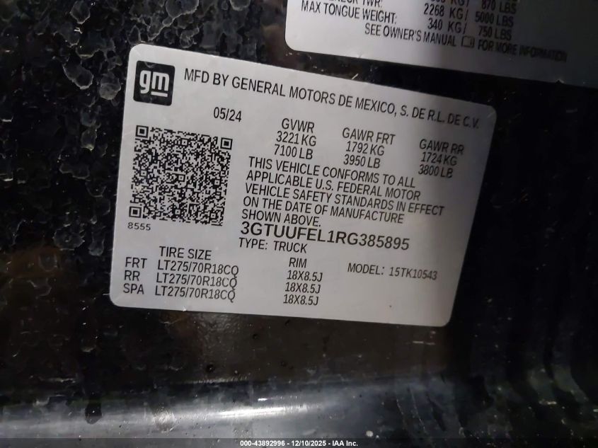 2024 GMC SIERRA 1500 - 3GTUUFEL1RG385895, цвет - Черный, 6.2, Бензин, Полный привод из США