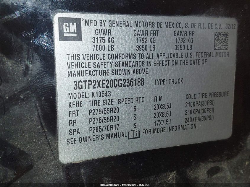 Цвет ЧерныйЦилиндры 8Привод Полный приводVIN 3GTP2XE20CG236188Состояние СтационарноПовреждения Крыша