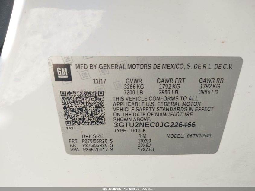 Цвет БелыйЦилиндры 8Привод Полный приводVIN 3GTU2NEC0JG226466Состояние СтационарноПовреждения Опрокидывание