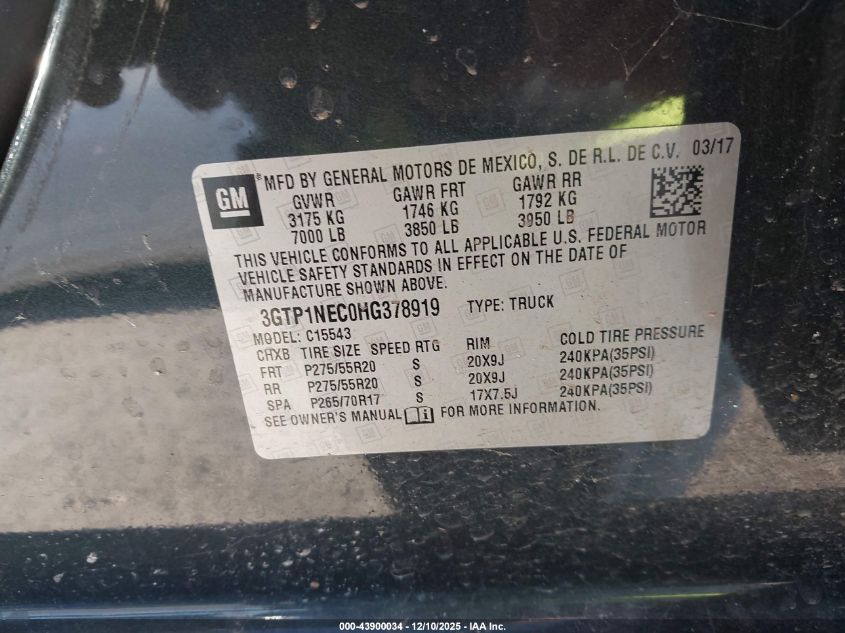 Цвет ЧерныйЦилиндры 8VIN 3GTP1NEC0HG378919Состояние СтационарноПовреждения Опрокидывание