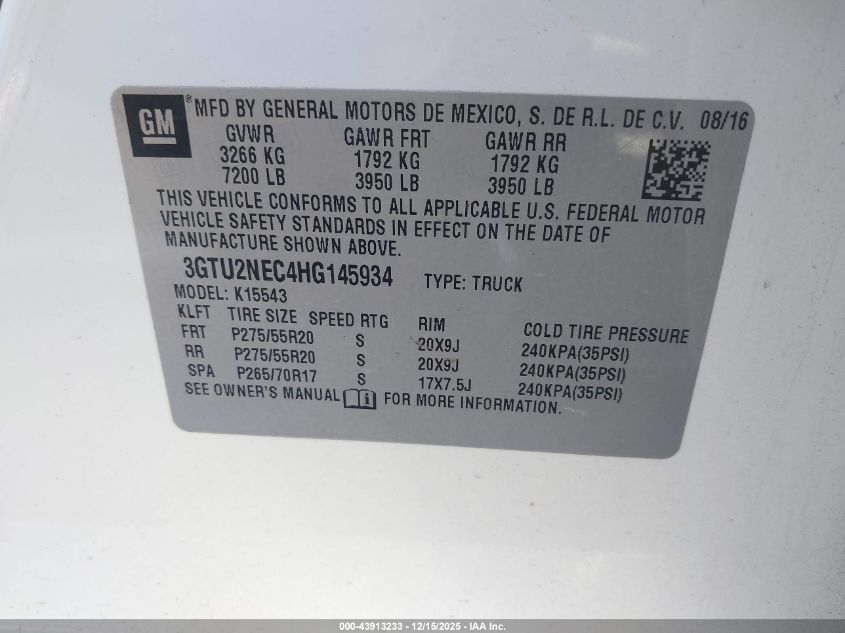 Цвет БелыйЦилиндры 8Привод Полный приводVIN 3GTU2NEC4HG145934Состояние Заводится и едет (проверено)Повреждения Передняя или задняя