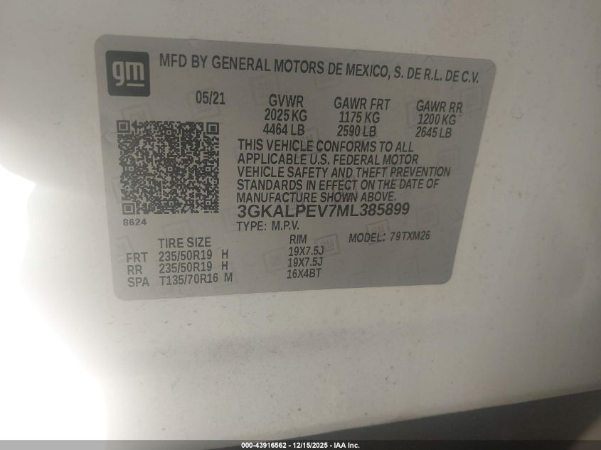 2021 GMC TERRAIN - 3GKALPEV7ML385899, цвет - Белый, 1.5, Бензин, Передний привод из США