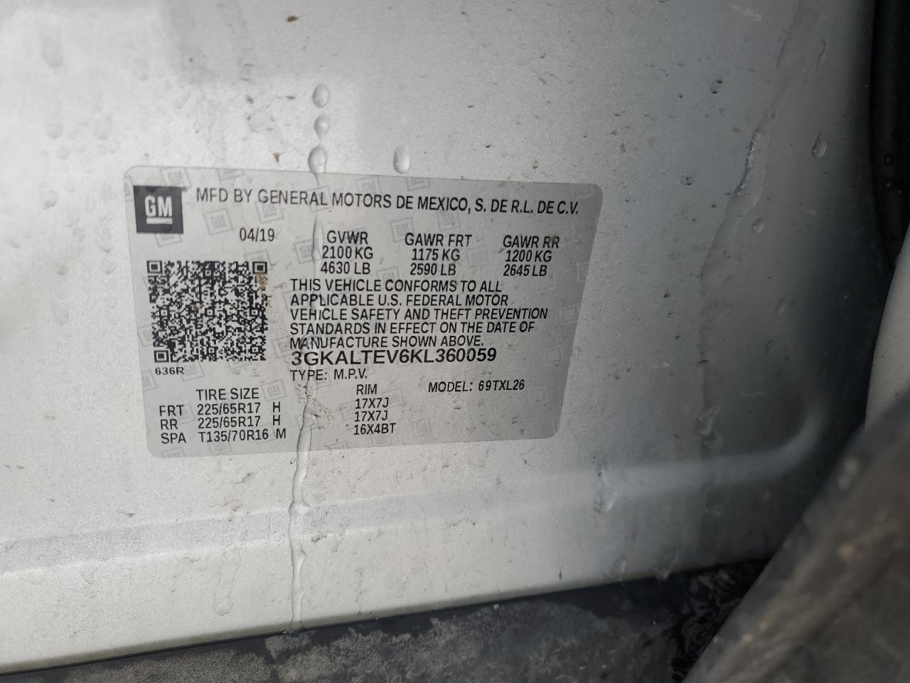 2019 GMC TERRAIN - 3GKALTEV6KL360059, цвет - Серебряный, 1.5, Бензин, Полный привод из США