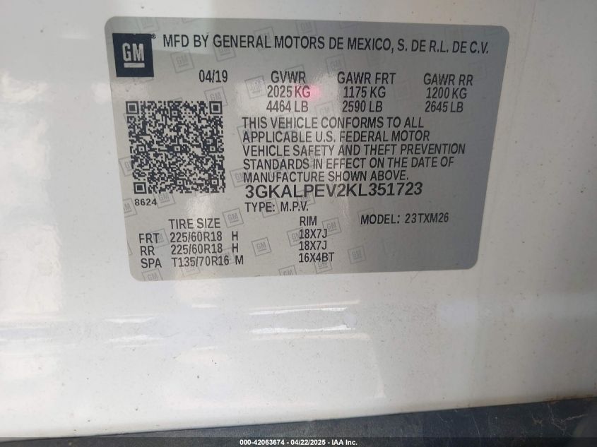 2019 GMC TERRAIN - 3GKALPEV2KL******, цвет - Белый, 1.5, Бензин, Передний привод из США