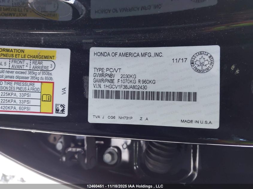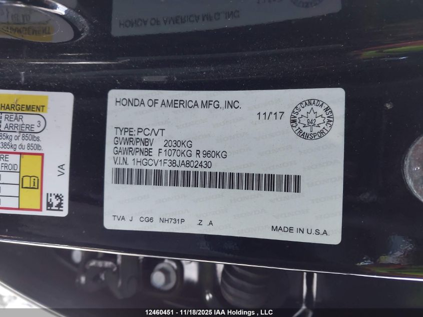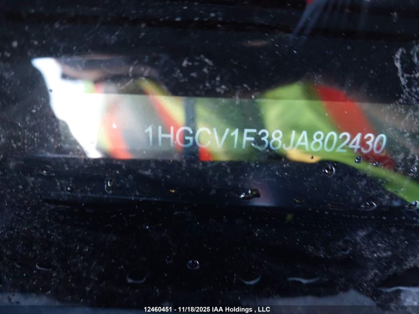 2018 HONDA ACCORD - 1HGCV1F38JA802430, цвет - Черный, , Бензин, Передний привод из США