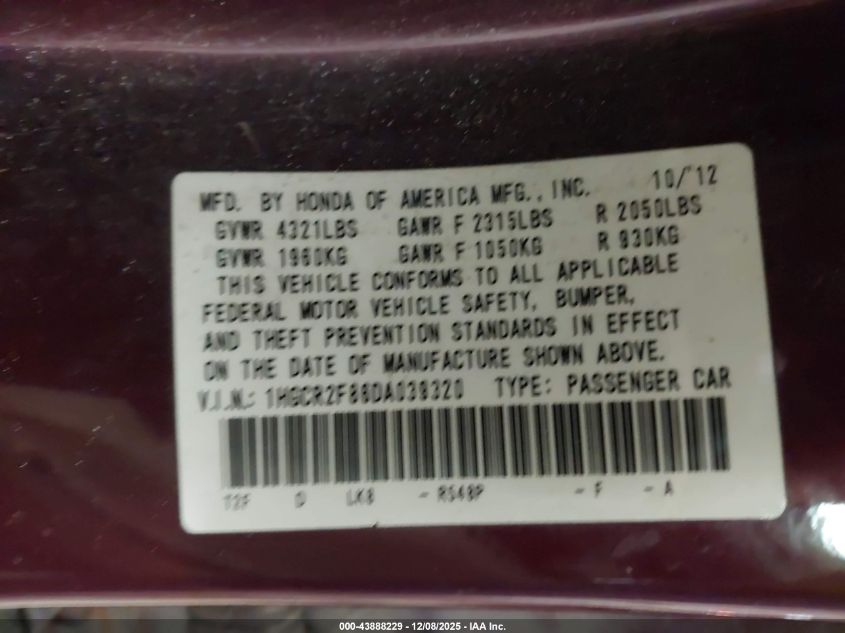 2013 HONDA ACCORD - 1HGCR2F86DA039320, цвет - Бургундия, 2.4, Бензин, Передний привод из США