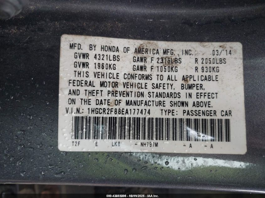 2014 HONDA ACCORD - 1HGCR2F88EA177474, цвет - Черный, 2.4, Бензин, Передний привод из США