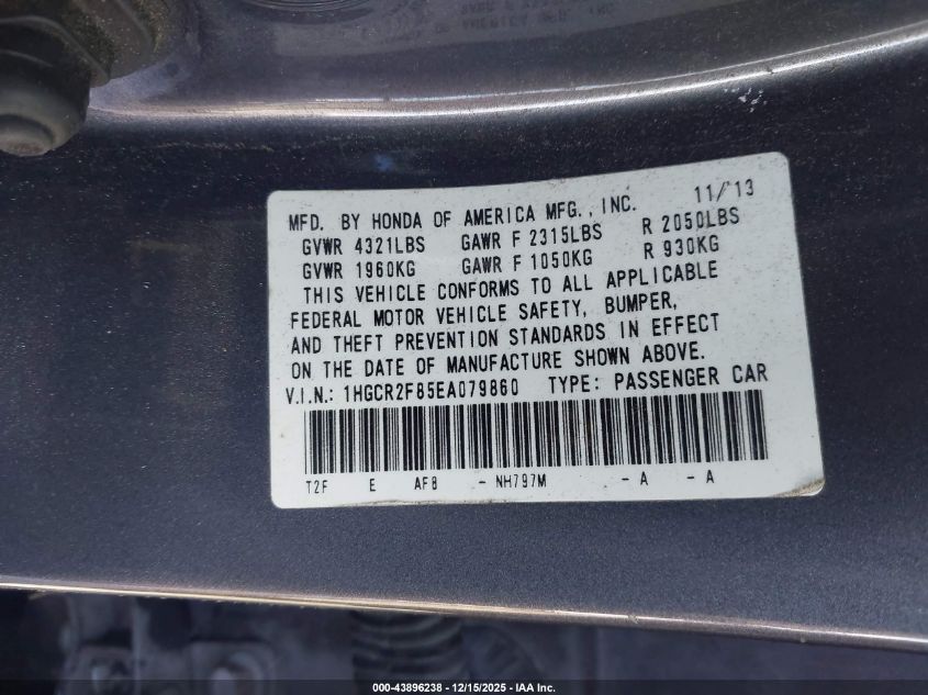 2014 HONDA ACCORD - 1HGCR2F85EA079860, цвет - Серый, 2.4, Бензин, Передний привод из США