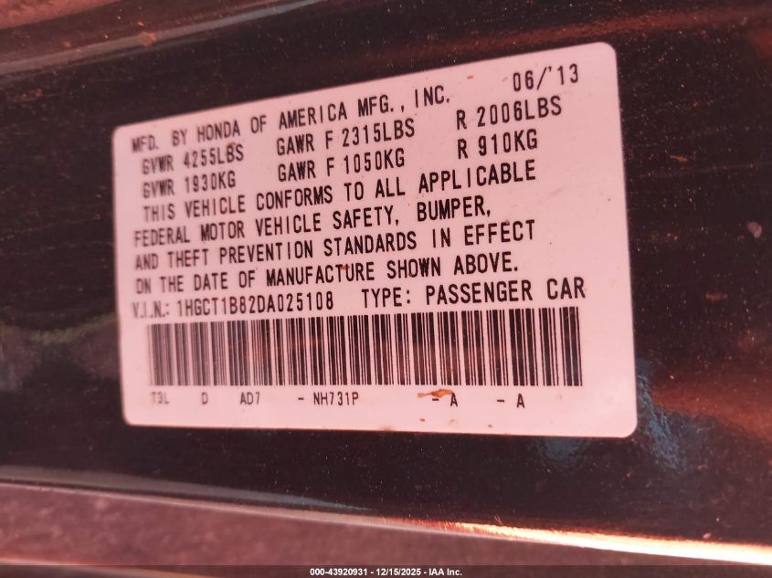 2013 HONDA ACCORD - 1HGCT1B82DA025108, цвет - Черный, 2.4, Бензин, Передний привод из США