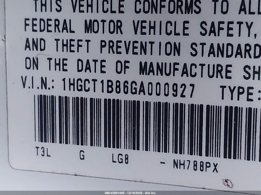 Цвет БелыйЦилиндры 4Привод Передний приводVIN 1HGCT1B86GA000927Состояние НеизвестноПовреждения Неизвестно