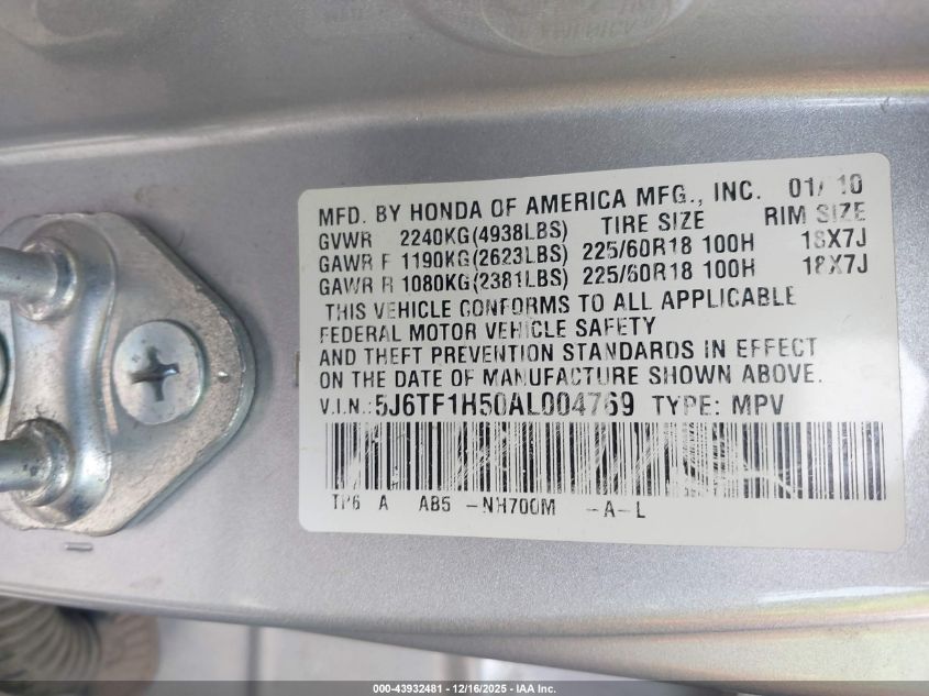 Цвет СерыйЦилиндры 6Привод Передний приводVIN 5J6TF1H50AL004769Состояние НеизвестноПовреждения Неизвестно