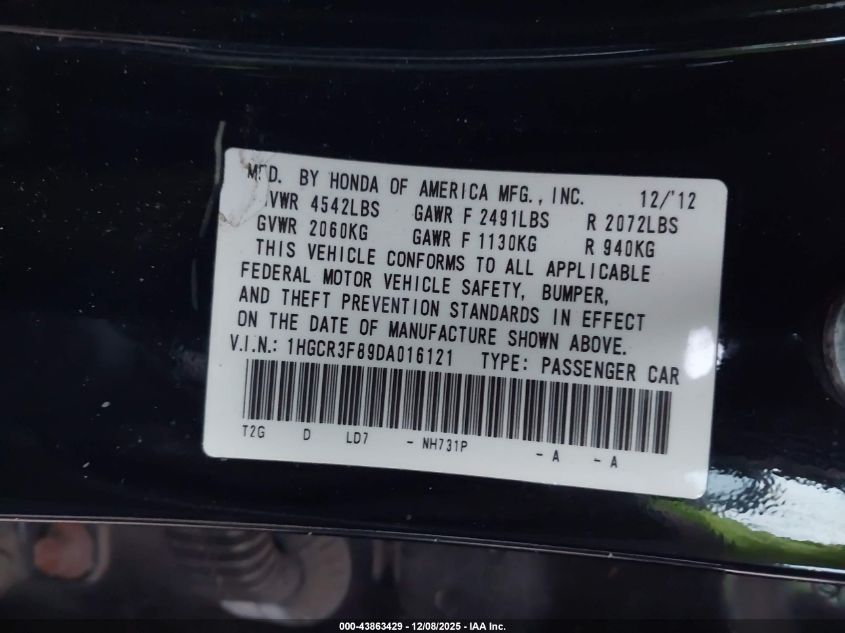 2013 HONDA ACCORD - 1HGCR3F89DA016121, цвет - Черный, 3.5, Бензин, Передний привод из США