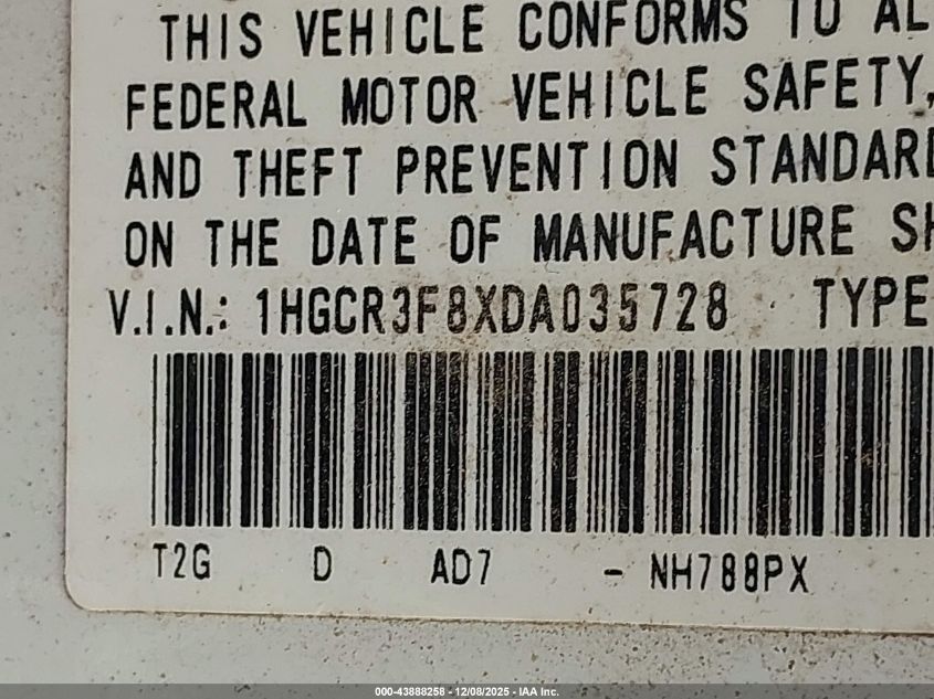 2013 HONDA ACCORD - 1HGCR3F8XDA035728, цвет - Белый, 3.5, Бензин, Передний привод из США