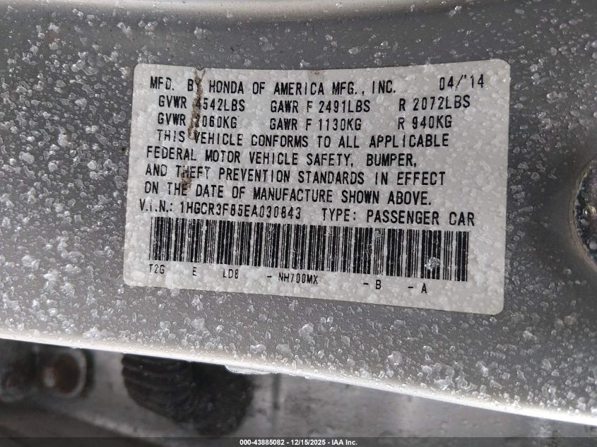 2014 HONDA ACCORD - 1HGCR3F85EA030843, цвет - Серебряный, 3.5, Бензин, Передний привод из США
