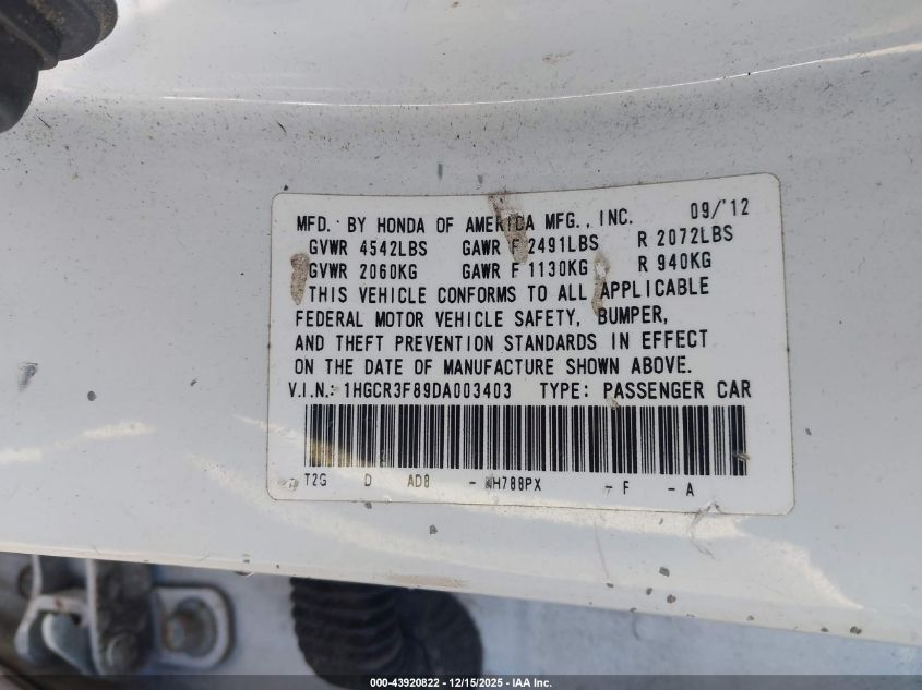 2013 HONDA ACCORD - 1HGCR3F89DA003403, цвет - Белый, 3.5, Бензин, Передний привод из США