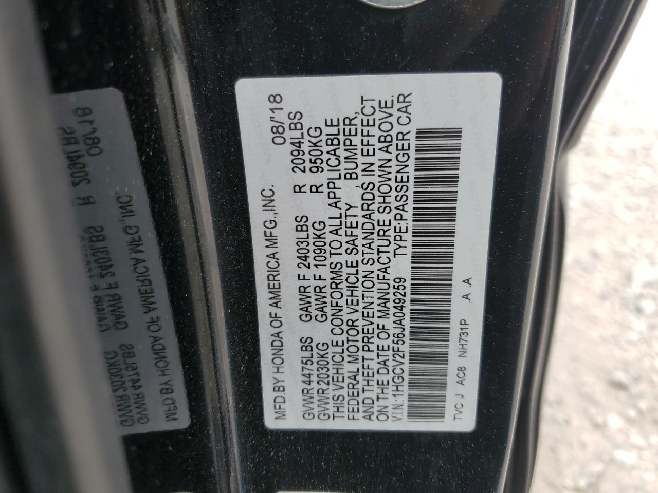 2018 HONDA ACCORD - 1HGCV2F56JA049259, цвет - Черный, 2.0, Бензин, из США