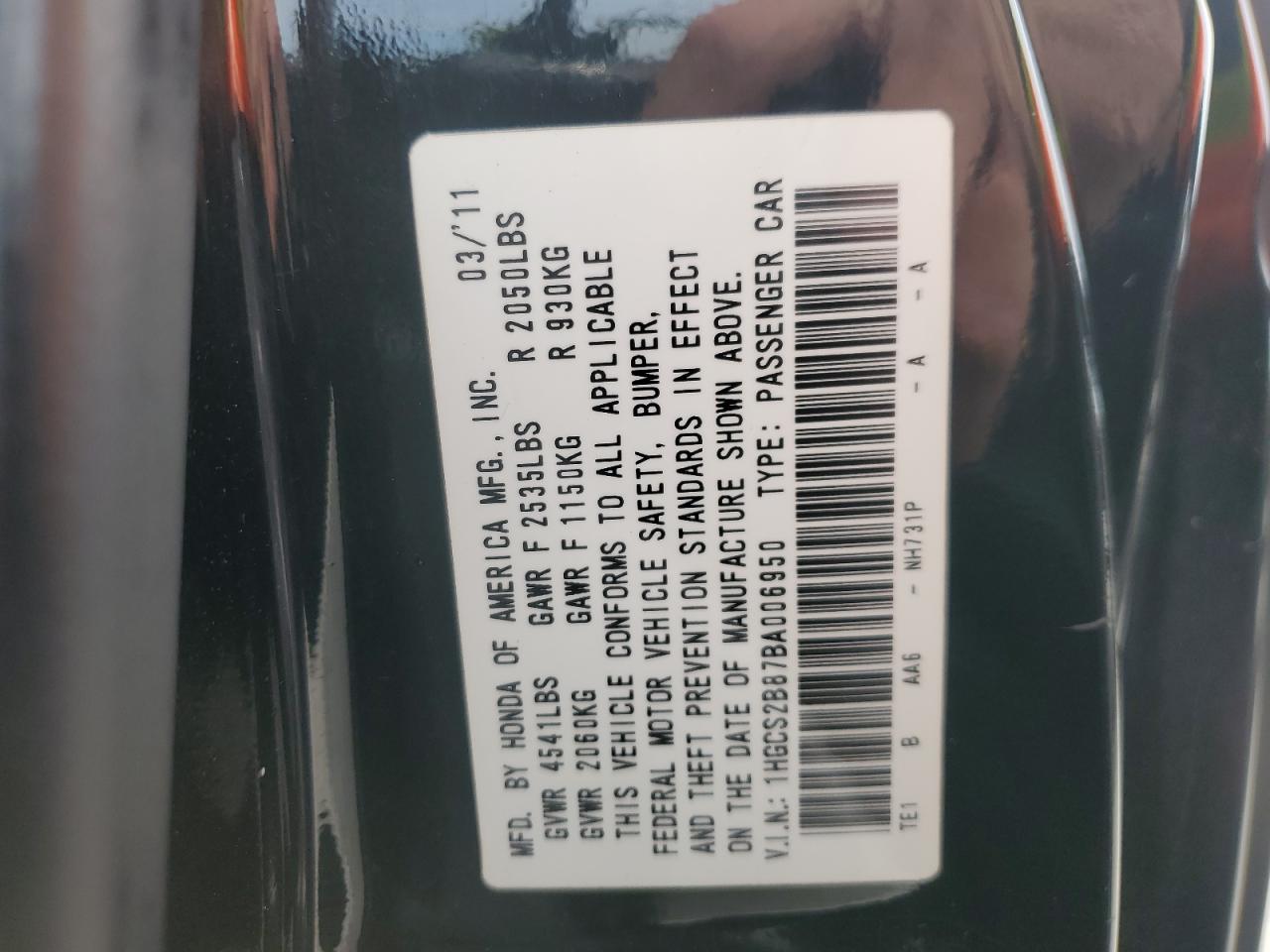 Цвет ЧерныйЦилиндры 6VIN 1HGCS2B87BA006950Состояние Заводится и едет (проверено)Повреждения Задняя