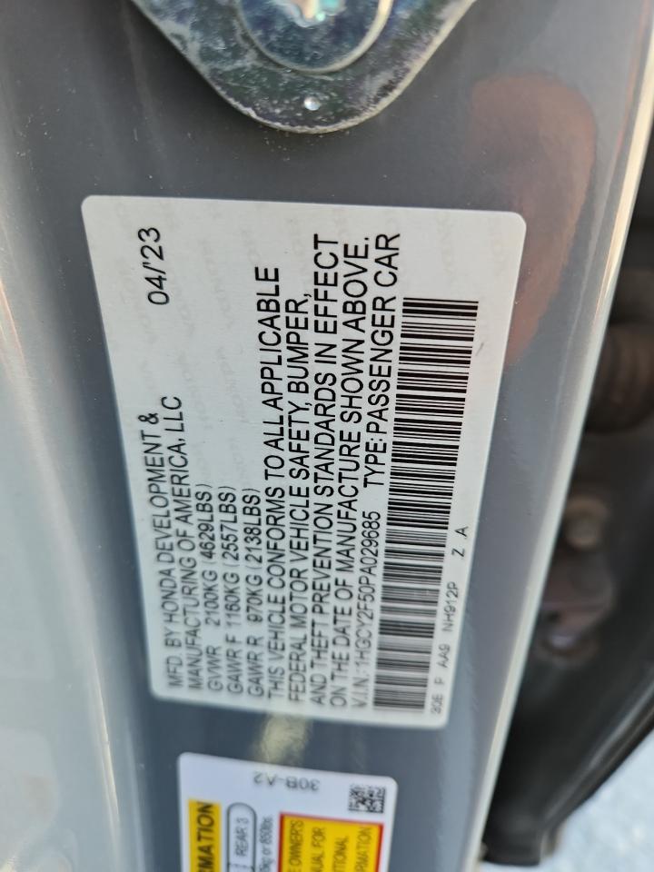 2023 HONDA ACCORD - 1HGCY2F50PA029685, цвет - Серый, 2.0, Гибрид, из США