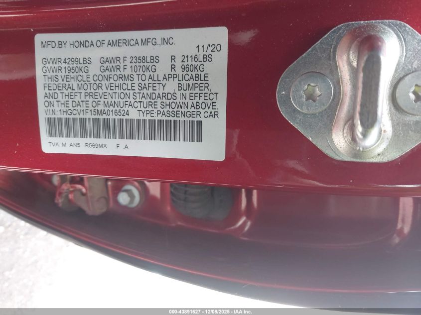 2021 HONDA ACCORD - 1HGCV1F15MA016524, цвет - Красный, 1.5, Бензин, Передний привод из США