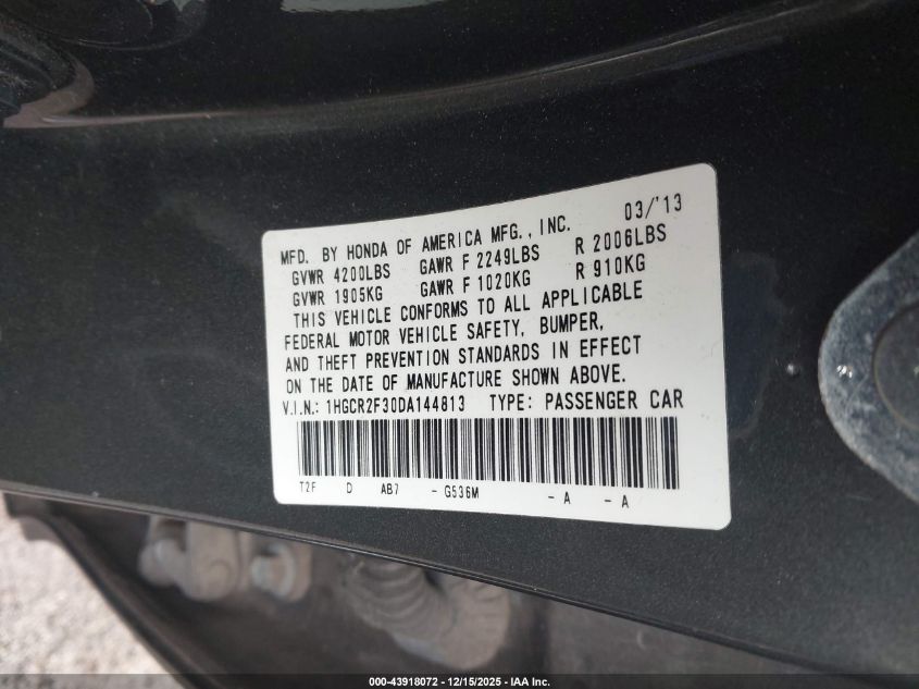 2013 HONDA ACCORD - 1HGCR2F30DA144813, цвет - Серый, 2.4, Бензин, Передний привод из США