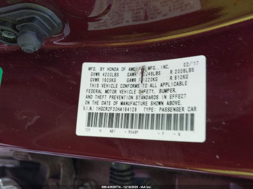 2017 HONDA ACCORD - 1HGCR2F30HA164128, цвет - , 2.4, Бензин, Передний привод из США