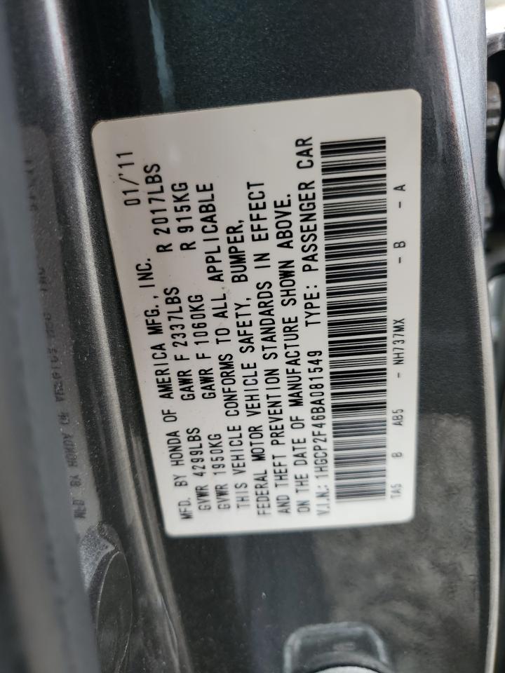 2011 HONDA ACCORD - 1HGCP2F46BA081549, цвет - Серый, 2.4, Бензин, из США