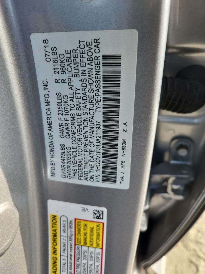 2018 HONDA ACCORD - 1HGCV1F31JA211937, цвет - Серый, 1.5, Бензин, из США