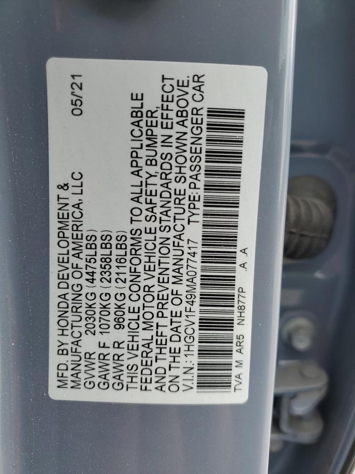 2021 HONDA ACCORD - 1HGCV1F49MA077417, цвет - Серый, 1.5, Бензин, из США