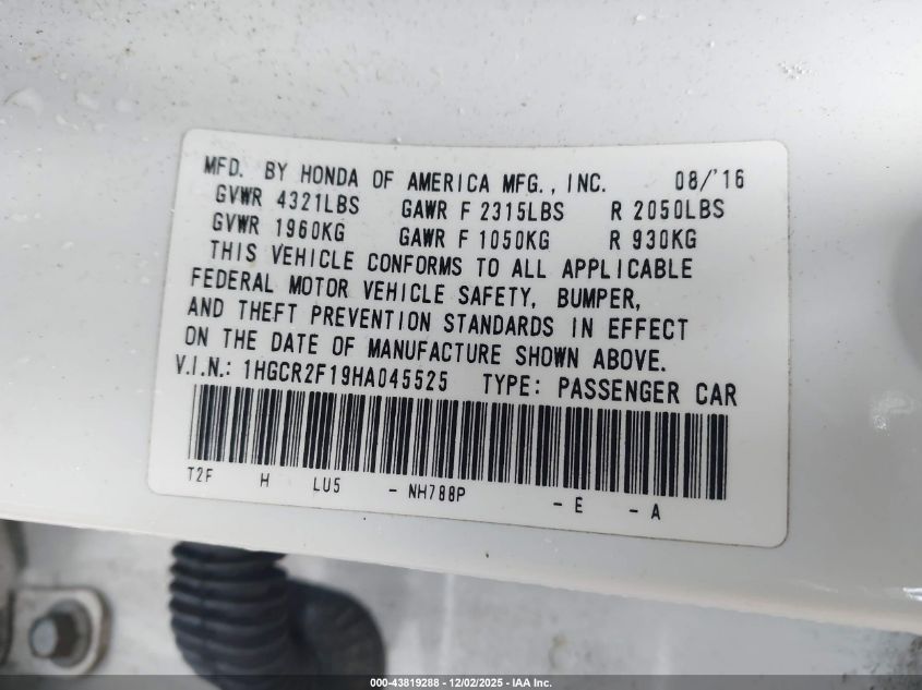2017 HONDA ACCORD - 1HGCR2F19HA045525, цвет - Белый, 2.4, Бензин, Передний привод из США