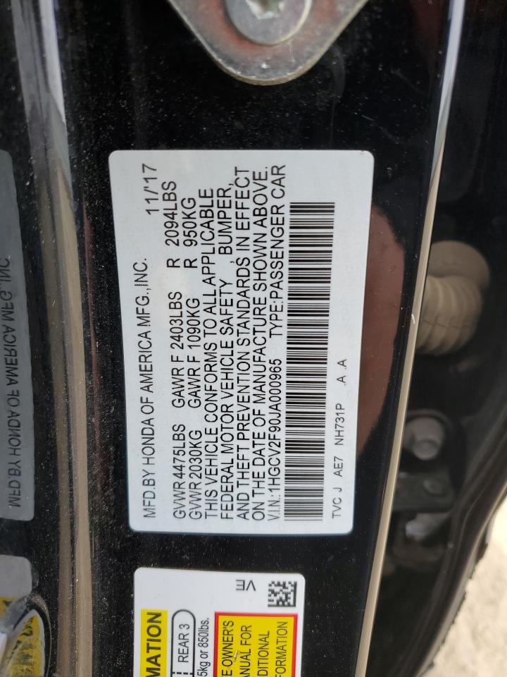 2018 HONDA ACCORD - 1HGCV2F90JA000965, цвет - Черный, 2.0, Бензин, из США