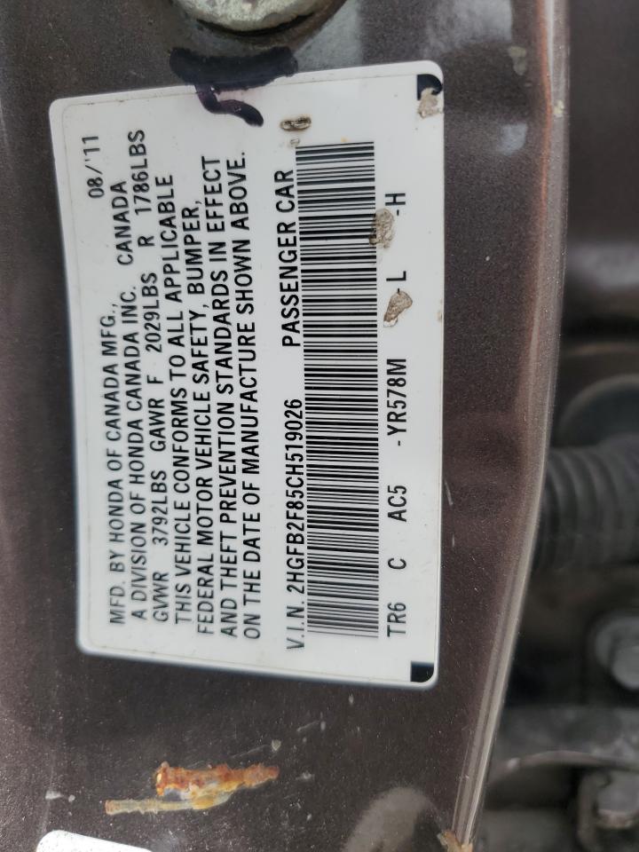 2012 HONDA CIVIC - 2HGFB2F85CH519026, цвет - Серый, 1.8, Бензин, из США