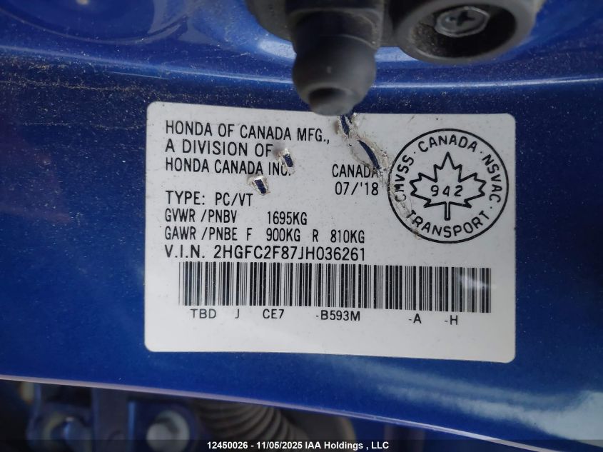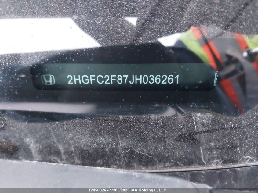 Цвет СинийЦилиндры 4Привод Передний приводVIN 2HGFC2F87JH036261Состояние СтационарноПовреждения ВандализмДата аукциона 2025-12-17