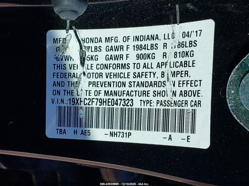 2017 HONDA CIVIC - 19XFC2F79HE047323, цвет - Черный, 2.0, Бензин, Передний привод из США