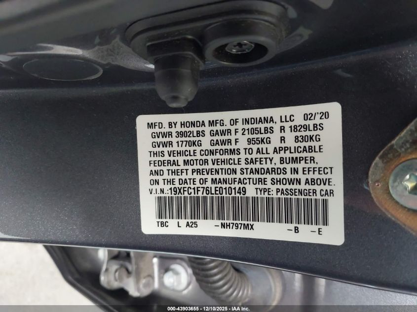 2020 HONDA CIVIC - 19XFC1F76LE010149, цвет - Серый, 1.5, Бензин, Передний привод из США