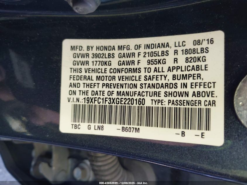 2016 HONDA CIVIC EXL